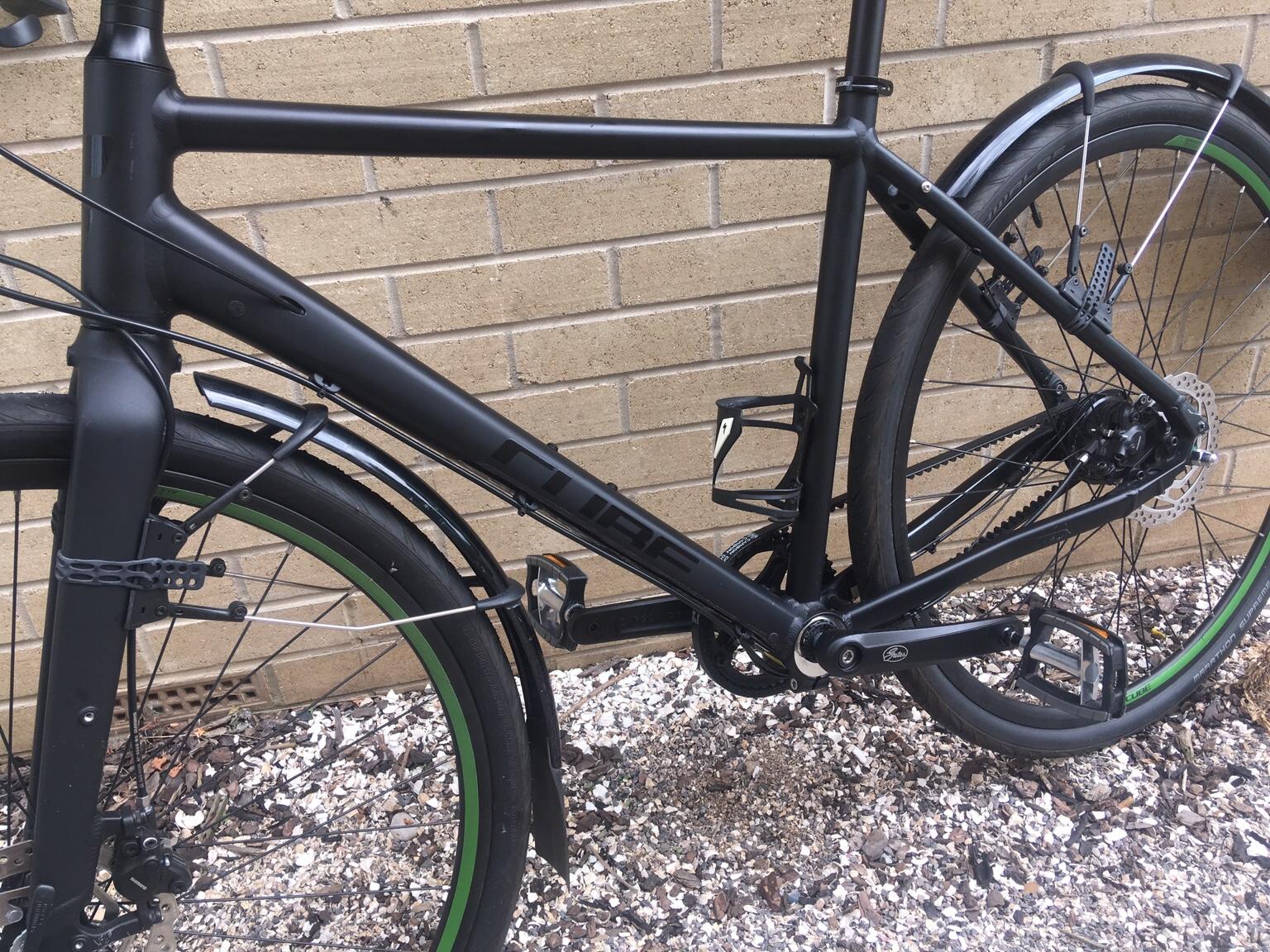 Wichtig wäre mir eine schaltung, die nur am hinterrad arbeitet, also nur 1 kettenblatt vorne... Über das exzenter tretlager kann der wartungsarme zahnriemen gespannt werden. Das sind die schutzbleche von cube.